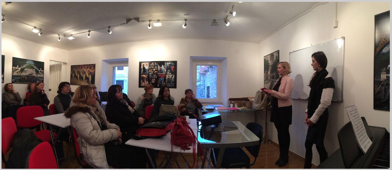 Voditeljica stručnog skupa Emilie Lehr, licencirana prestavnica TV5 Monde, međunarodne mreže frankofonije, održala je vrlo interesantnu obuku profesora francuskog jezika na temu: Chanson c'est la classe! / Šansona, to je zakon!". Ova tema se povezuje sa Večeri šansone 2017., koja čini sastavni dio Dana francuskog jezika i kulture. Cilj skupa je stvaranje veze između francuskog jezika, glazbe i pedagogije i pružanje prilike profesorima francuskog i učenicima izići iz razreda i obogatiti svoje odnose. Obuka je pomogla profesorima kako istražiti i iskoristiti sve resurse glazbe na jedan dinamičan i komunikativan način, kako bi potakli učenike na učenje ali i pripremili učenike za večer francuske šansone.